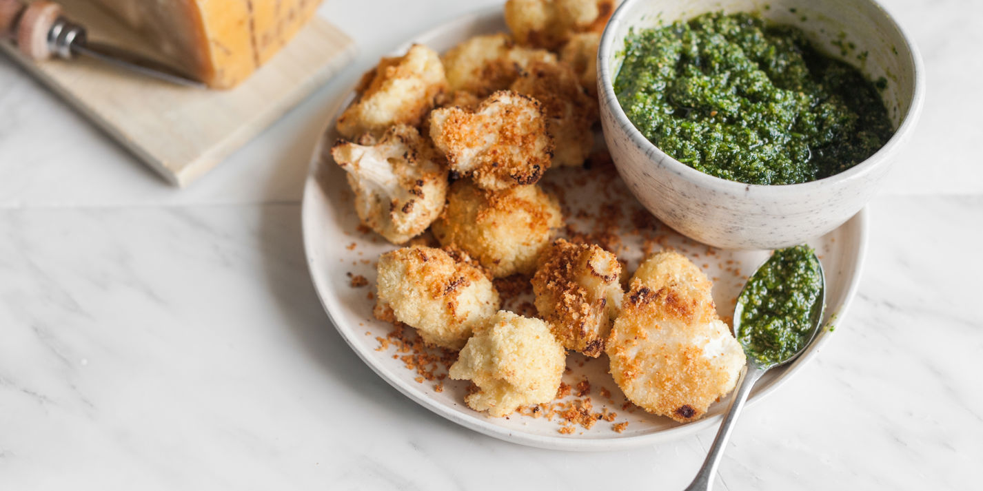 Grana Padano cauliflower florets with parsley dip