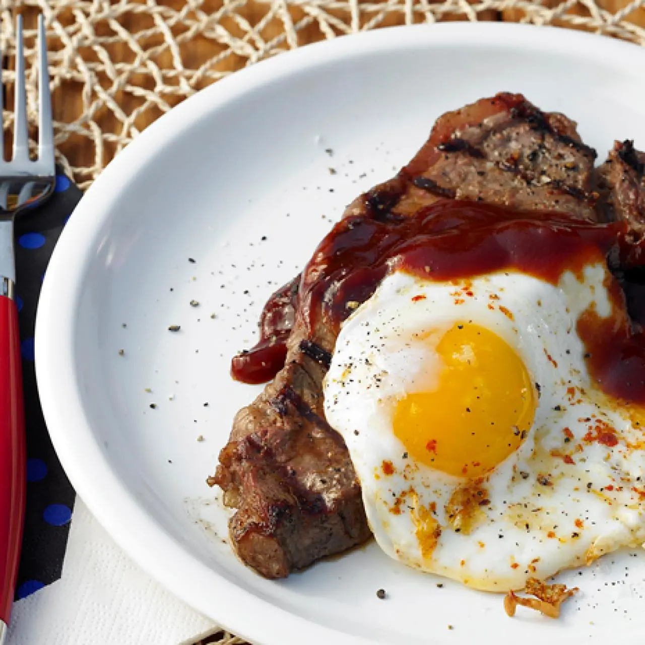 Grilled Steak and Eggs with Beer and Molasses